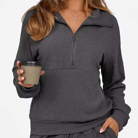Upgrade your casual wardrobe with this chic and cozy two-piece sweatsuit set, perfect for the stylish woman who values comfort and elegance during fall outings.