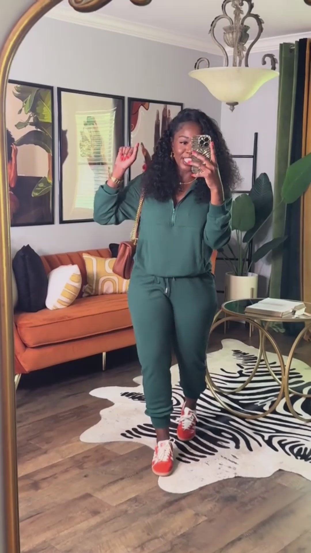 Upgrade your casual wardrobe with this chic and cozy two-piece sweatsuit set, perfect for the stylish woman who values comfort and elegance during fall outings.